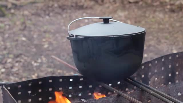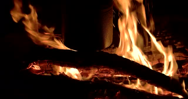 600160 - Boiling Water in a Tourist Pot Above the Fire at Night