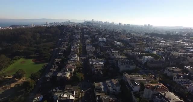 Flying over San Francisco and making an tilt towards the skyline