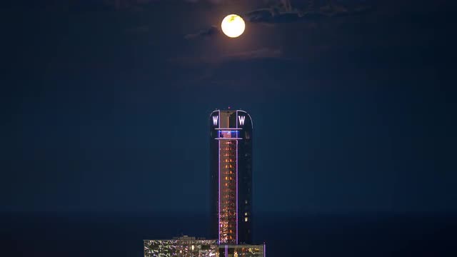 spain sun light barcelona famous beach hotel sea panorama 4k