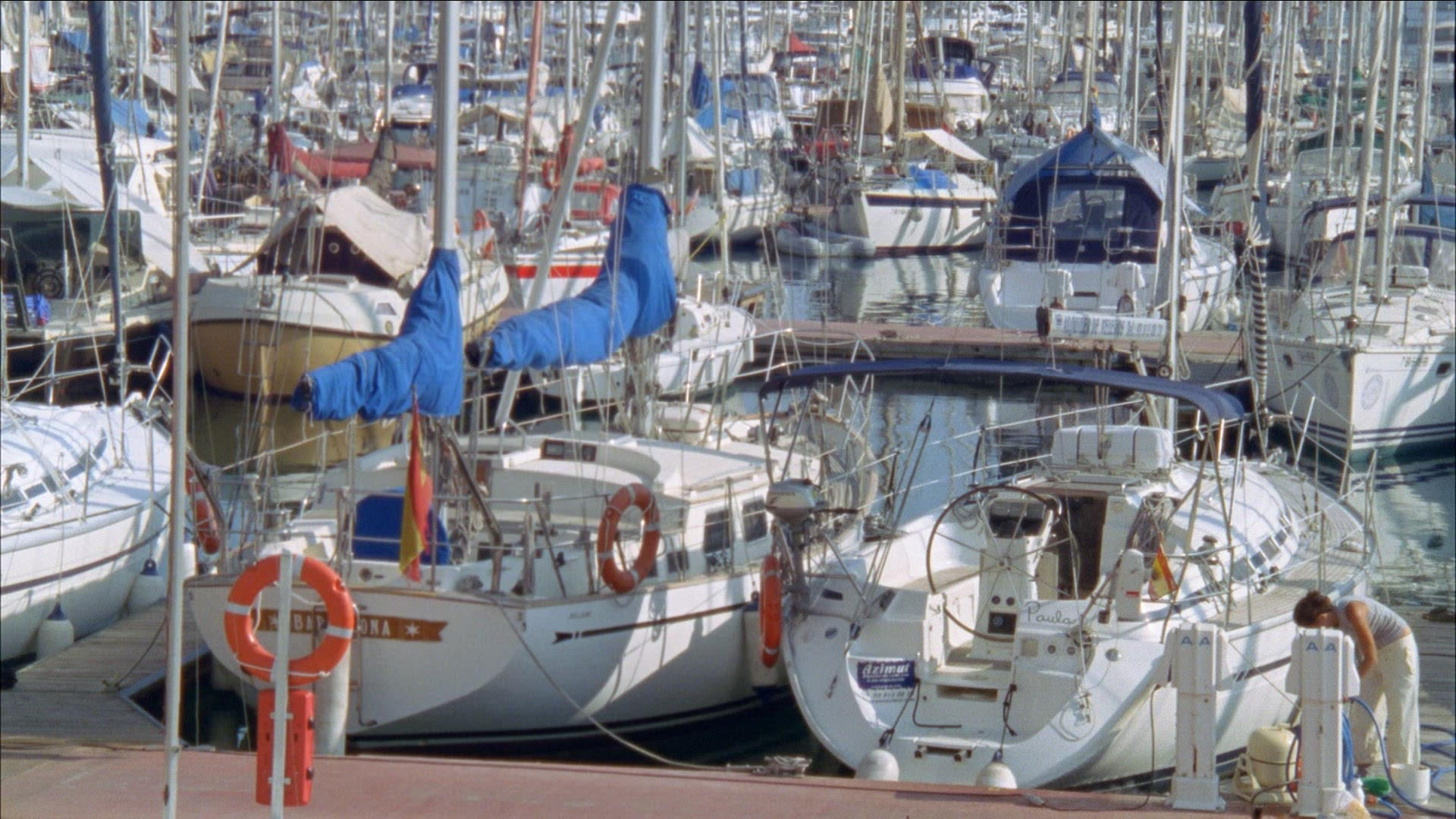 > spain barcelona private yacht dock shadow view 4k