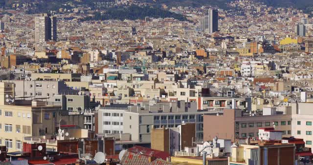 > spain barcelona sunny day montjuic park funicular city panorama 4k