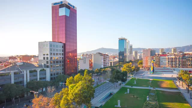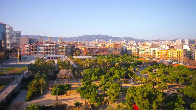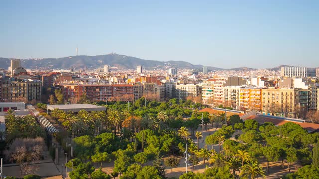 spain sun light barcelona panorama tibidabo mountain view 4k