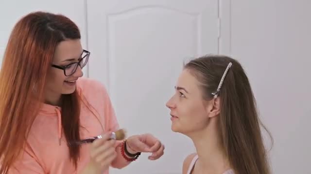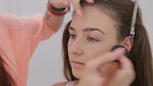 Close up shot. Professional make-up artist applying mascara on eyelashes