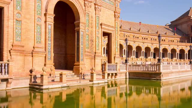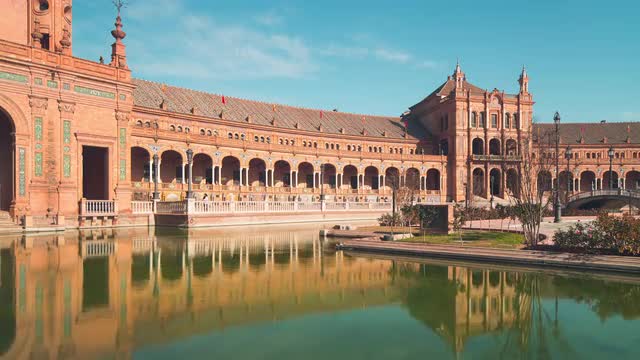 spain seville park pond and man with birds day light 4k time lapse