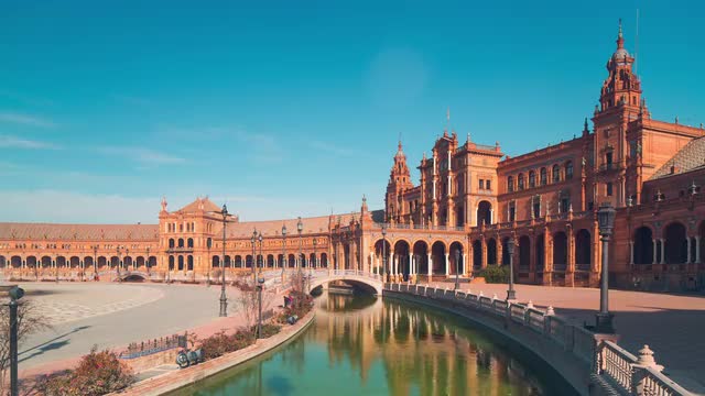 > sunny day bridge seville royal palace of spain panorama 4k time lapse spain