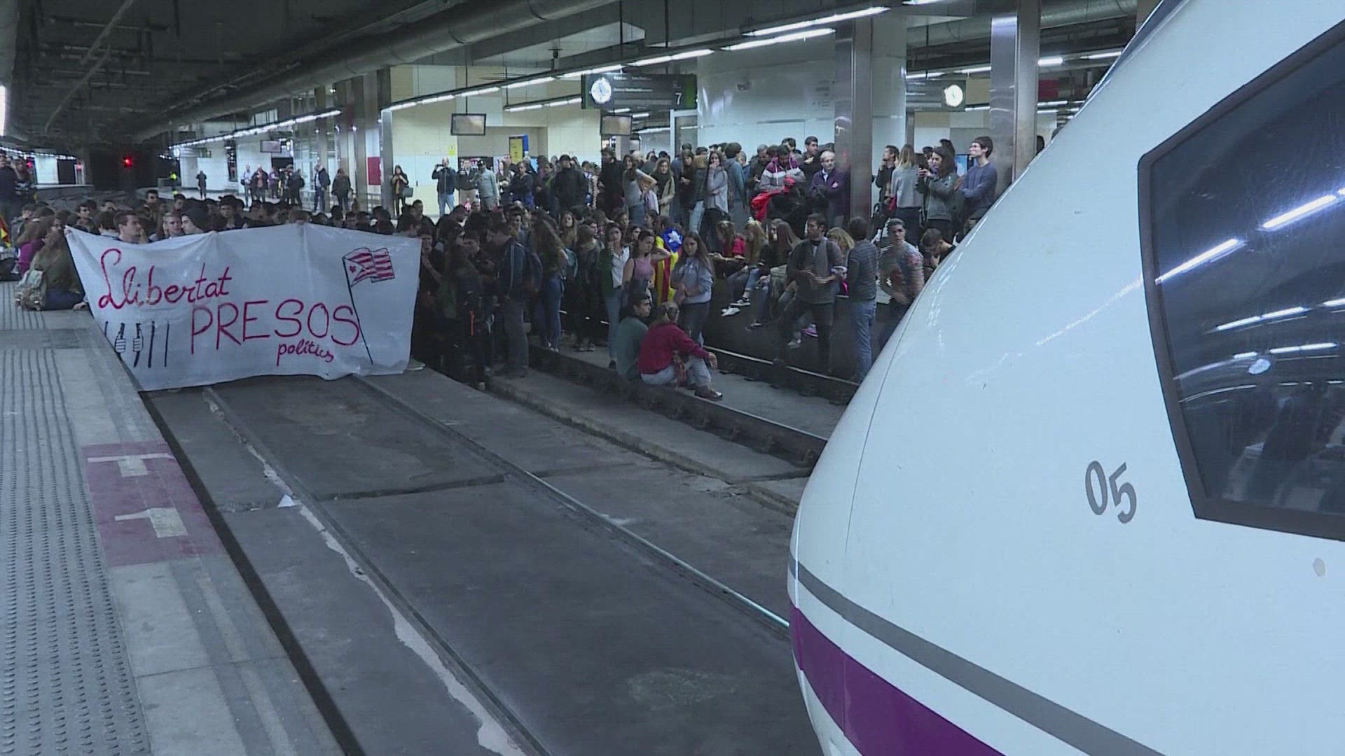 > madrid sunny day main train station street panorama 4k time lapse spain