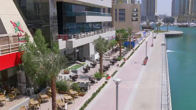 uae dubai marina walking bay restaurant and cafe 4k