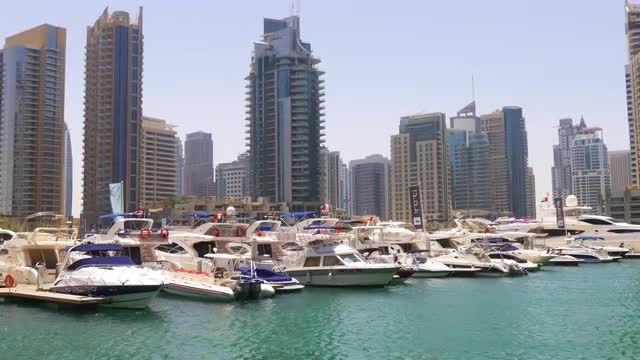 uae dubai marina sun light yacht dock gulf panorama 4k
