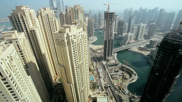 377054 - Aerial Dubai Skyscrapers Palm Jumeirah Dubai Marina homes UAE