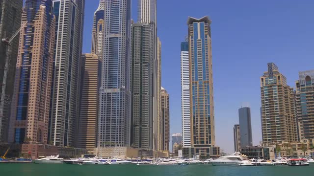 377158 - Aerial Dubai Marina yachts Apartment Skyscrapers UAE