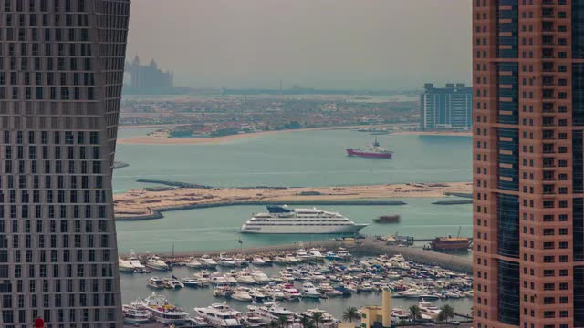 614220 - dubai marina palm bay private yacht dock roof panorama 4k time lapse uae