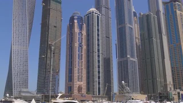 614101 - dubai marina famous buildings yacht dock roof panorama 4k time lapse uae
