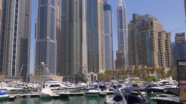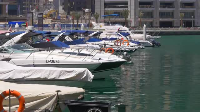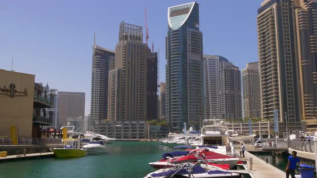 751667 - dubai marina day light yacht port walking pier 4k uae