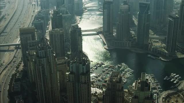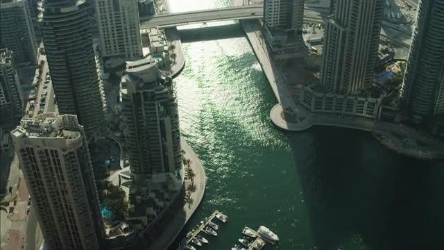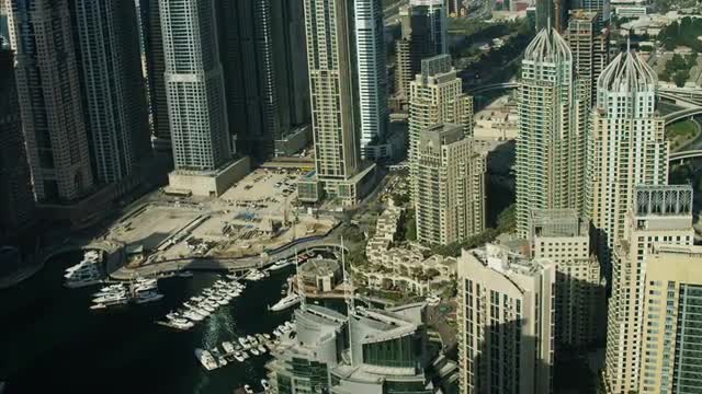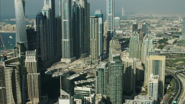 982297 - Timelapse Dubai Marina with yachts in harbor and modern towers from top of skyscraper