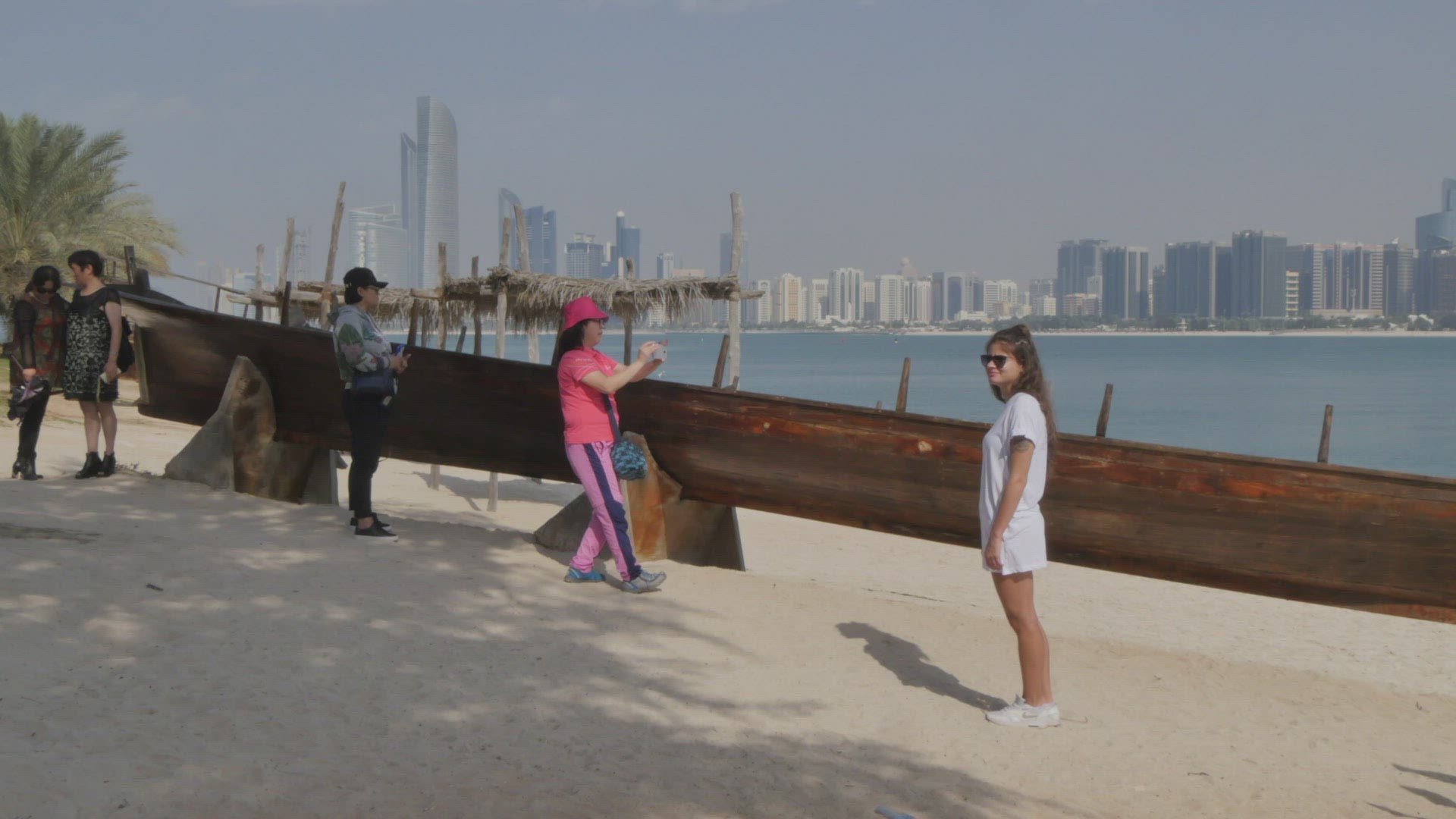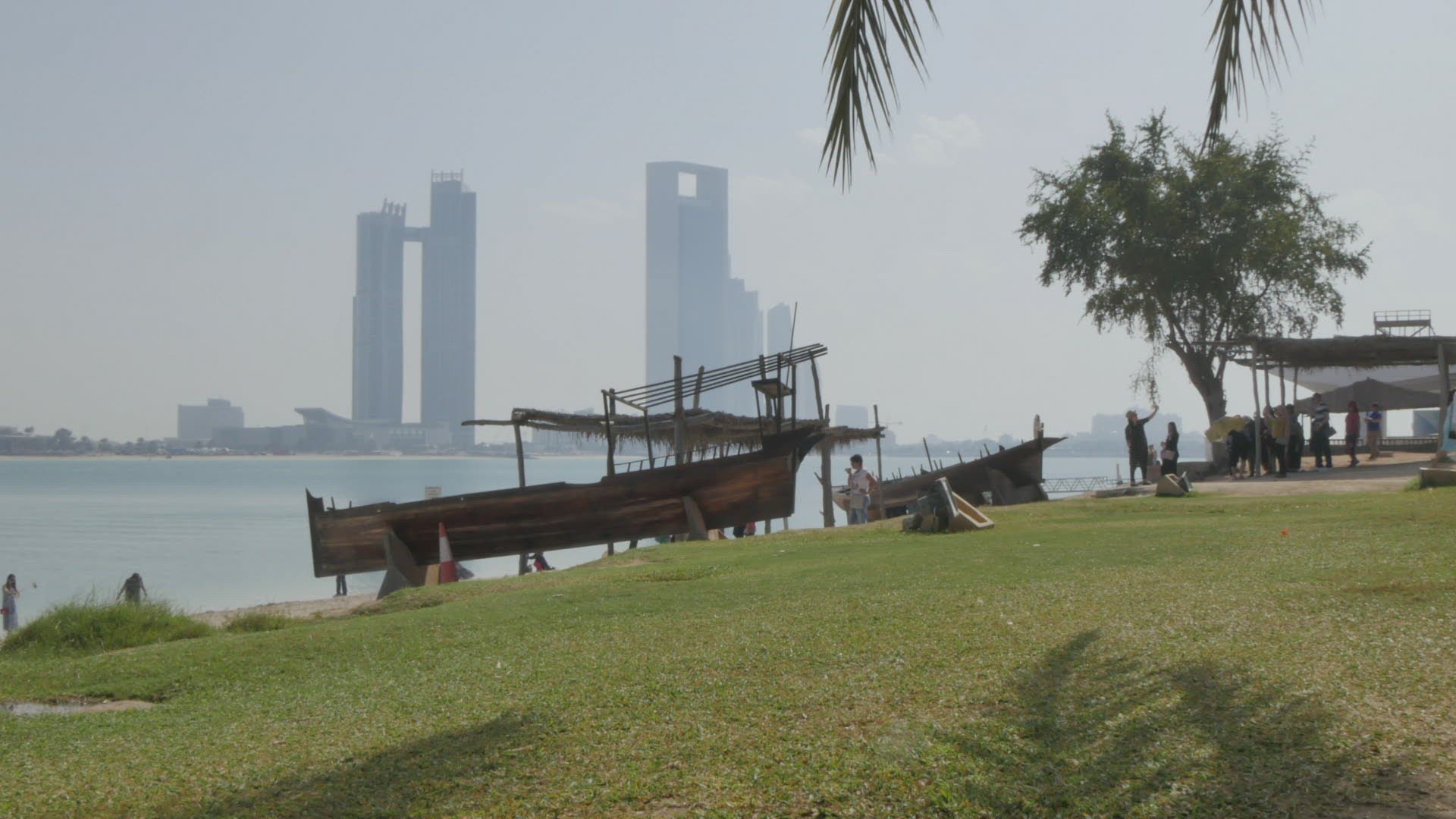 > sunny day abu dhabi traffic bay panorama 4k time lapse united arab emirates