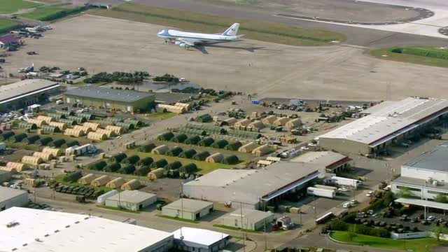 > MS POV AERIAL ZO American airplane on ground at Louis Armstrong New Orleans International Airport /