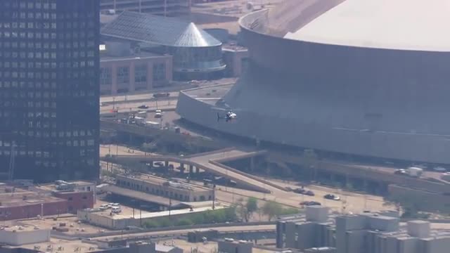 MS POV AERIAL TS Emergency vehicles moving on street / United States