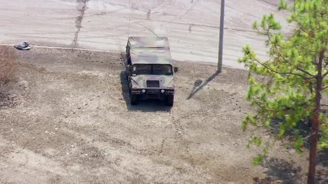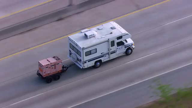 > MS POV AERIAL TS Emergency vehicles moving on street / United States