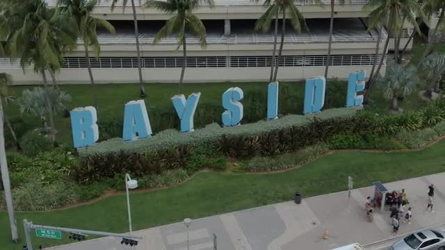 > sunny day miami downtown bayside hard rock cafe panorama 4k florida usa