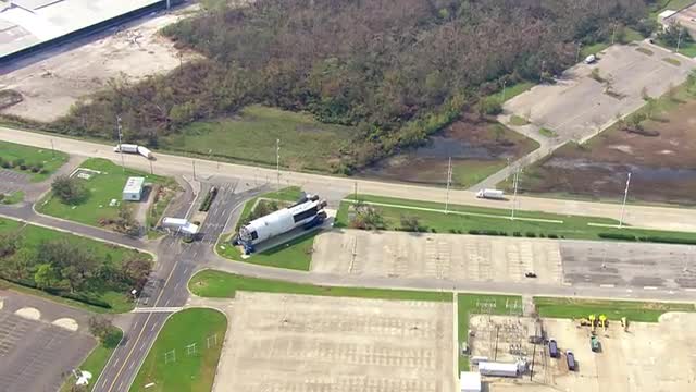 > WS POV AERIAL View of rocket at NASA Michoud Assembly Facility / United States