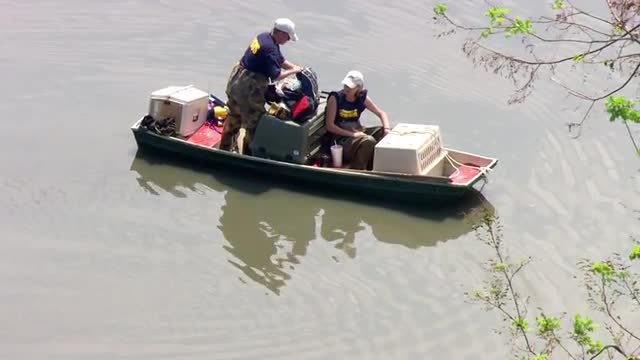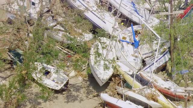 > WS POV AERIAL ZO Boats damaged at harbour / United States