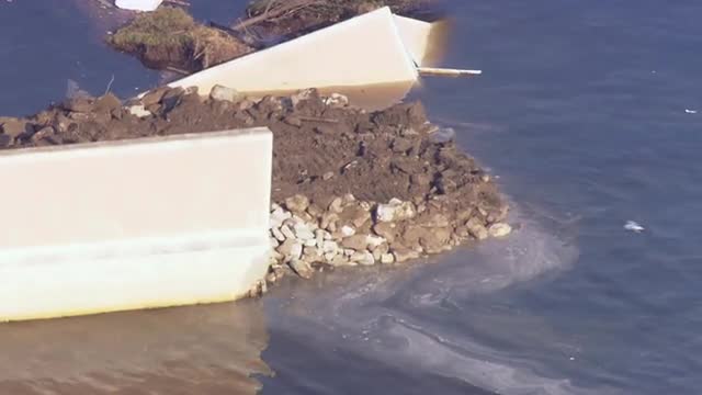 > MS POV AERIAL Destruction due to natural disaster / United States