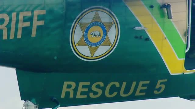 MS POV AERIAL TS Sheriff helicopter for search and rescue / United States