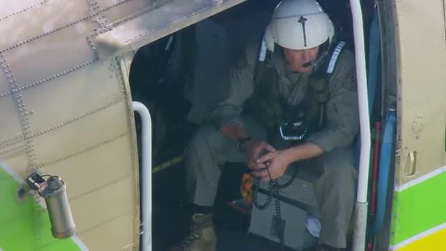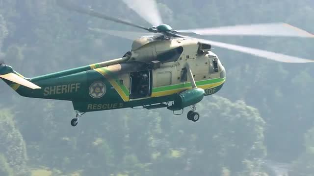 > MS POV AERIAL TS Sheriff helicopter for search and rescue / United States