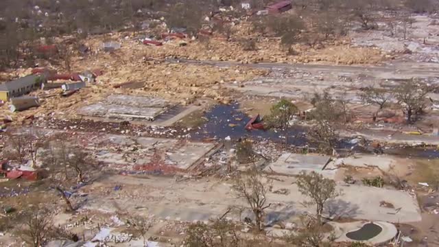 Aerial footage of hurricane katrina, category 5 hurricane in New Orleans