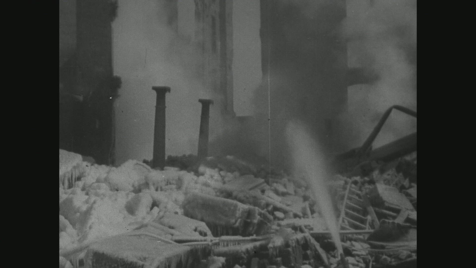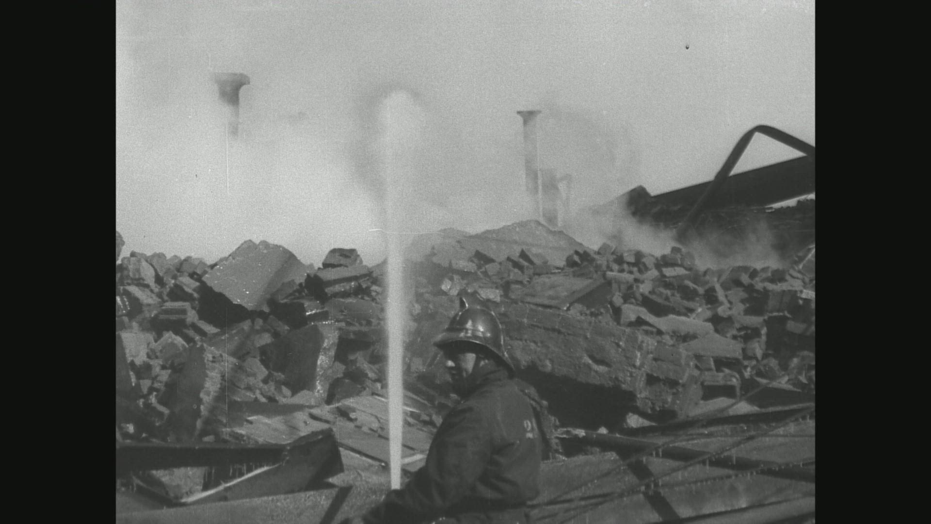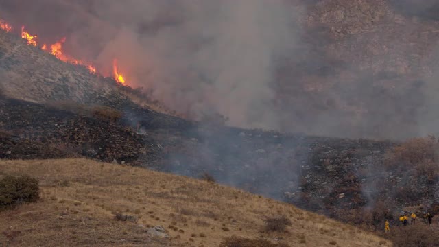 > MS POV AERIAL TS ZO Firefighter conducting rescue operation / United States