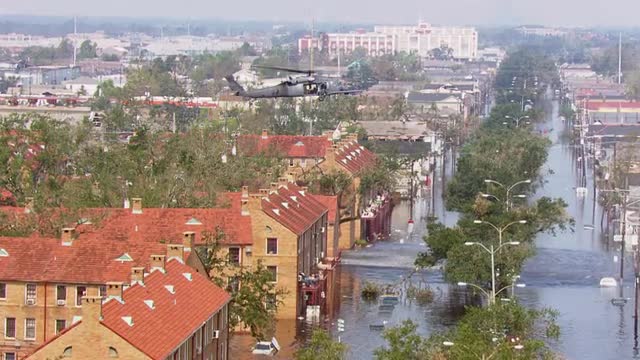 Aerial footage of hurricane katrina, category 5 hurricane in New Orleans