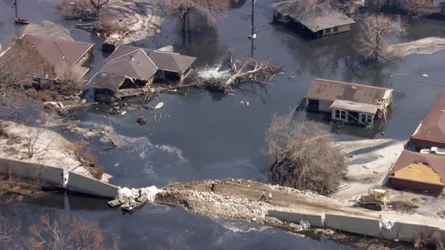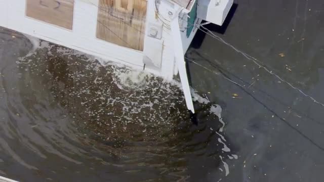 > MS POV ZI Ignited gas line breaks bubbling up through water / United States