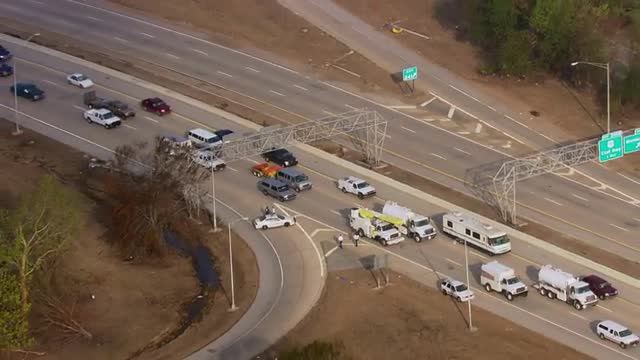 > MS POV AERIAL ZO View of vehicles moving on highway / United States