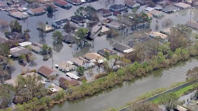 MS POV AERIAL TS ZI Helicopter hovering around sandbags / United States