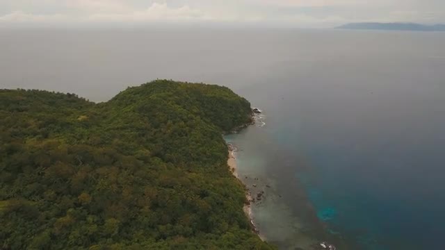 > Aerial view beautiful beach on a tropical island. Philippines, El Nido.