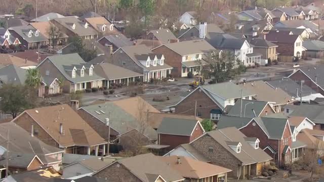 > MS POV AERIAL TS ZI View of men moving in bulldozer / United States