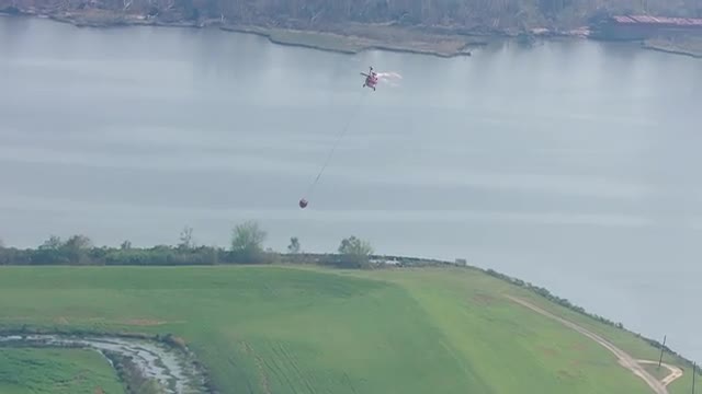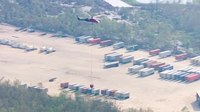 > MS POV AERIAL ZO Emergency vehicles moving on highway / United States