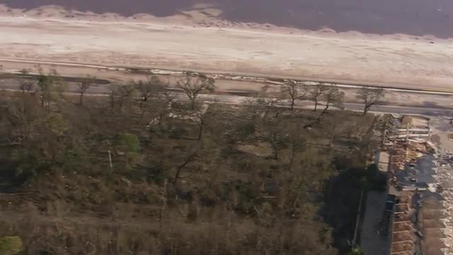 > WS POV AERIAL Grand casino hotel damaged due to natural disaster / United States