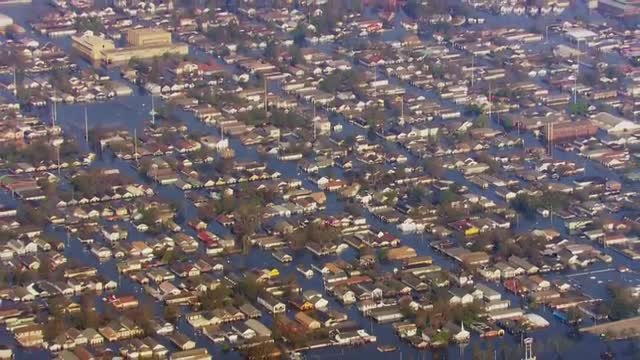 Aerial footage of hurricane katrina, category 5 hurricane in New Orleans