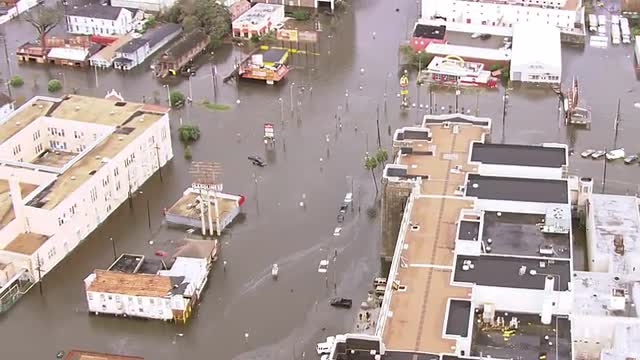 Aerial footage of hurricane katrina, category 5 hurricane in New Orleans