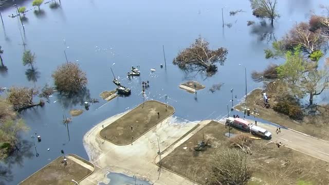 Aerial footage of hurricane katrina, category 5 hurricane in New Orleans