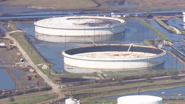 > MS POV AERIAL ZO Boat repair yard fire near NASA Michoud Assembly Facility / United States