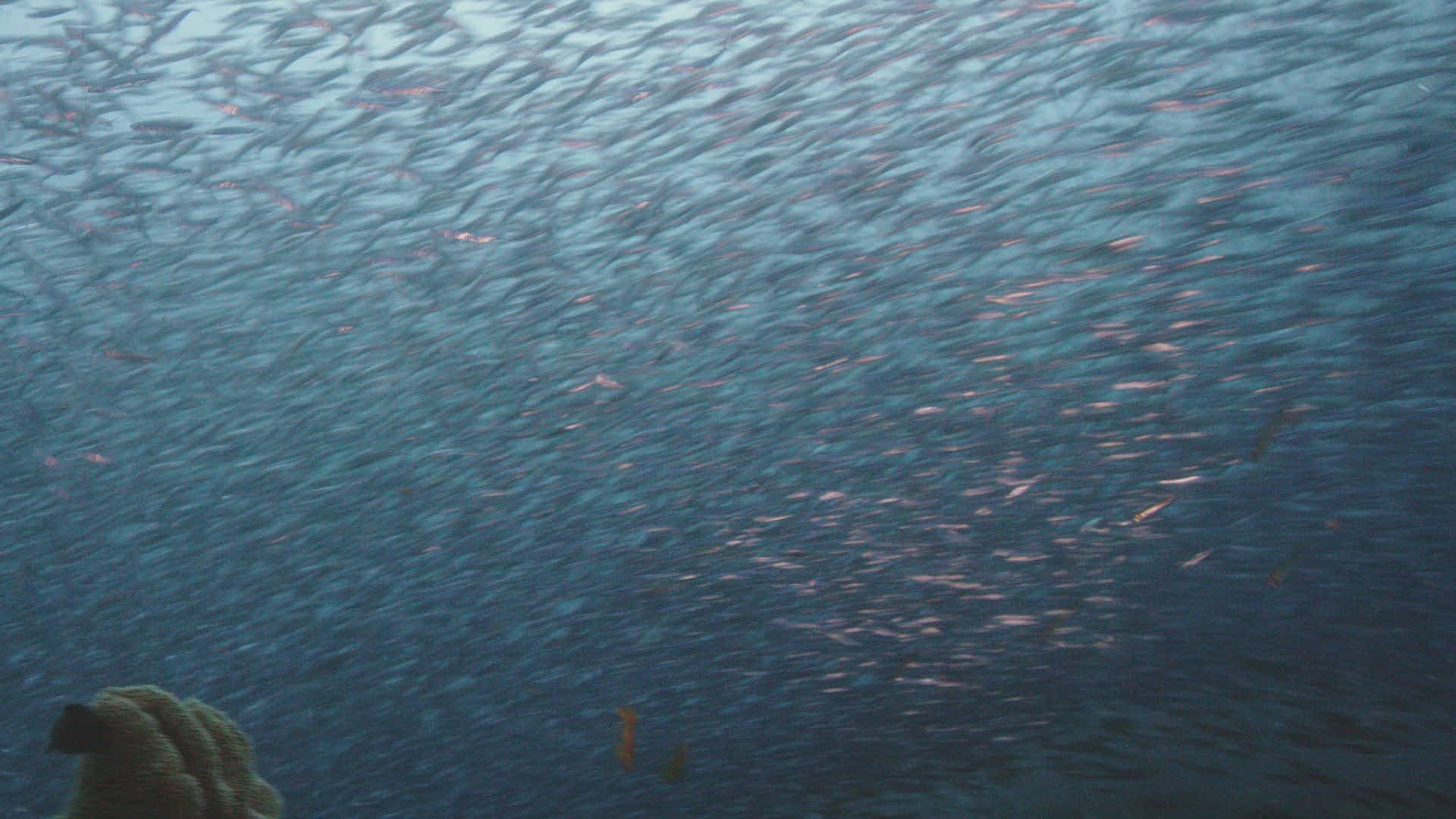 Schooling Jack fish, Caranx sexfasciatus. Tropical fish on a coral reef. Wonderful and beautiful underwater world with corals and tropical fish. Hard and soft corals. Diving and snorkeling in the tropical sea. 4K video, Philippines.