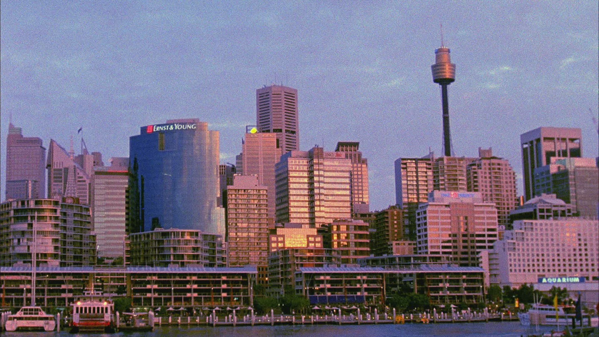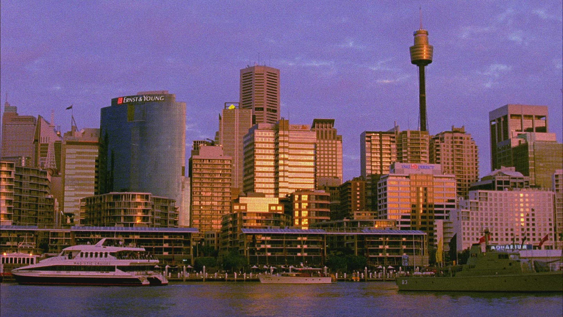 > Aerial view of Darling Harbour Maritime Museum and a birds eye view over HMAS Vampire. Australia