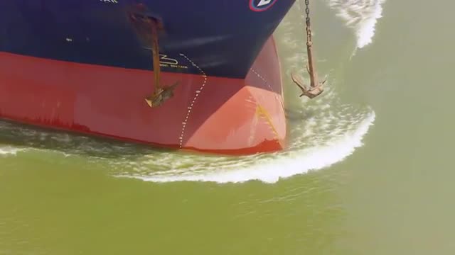 MS POV AERIAL TS ZI ZO View of ship moving on river / United States