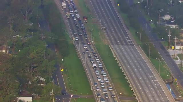 MS POV AERIAL ZO View of traffic moving on highway / United States