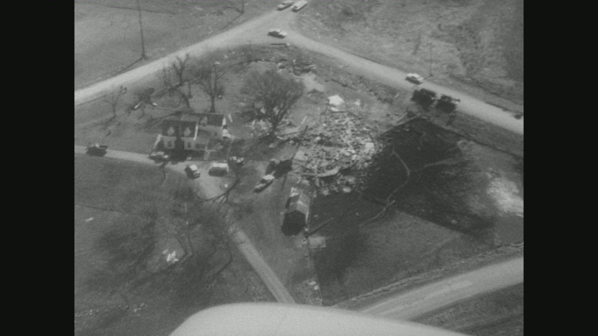 MS POV AERIAL ZI ZO Hyatt high-rise hotel damaged due to natural disaster / United States