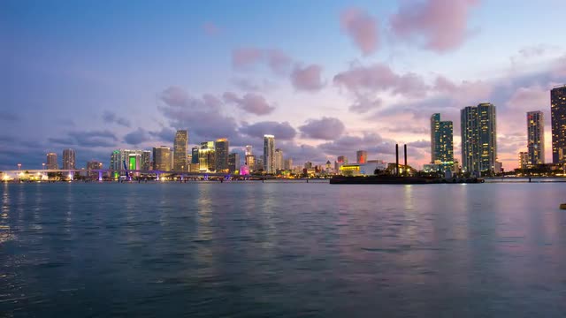 > sunset sky miami city downtown panorama 4k time lapse florida usa