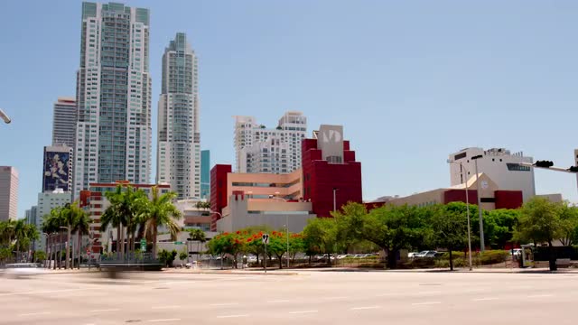> summer day miami downtown street traffic 4k time lapse florida usa