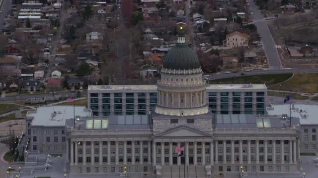 Aerial view of the Utah State Capital building. Salt Lake City, Utah, USA